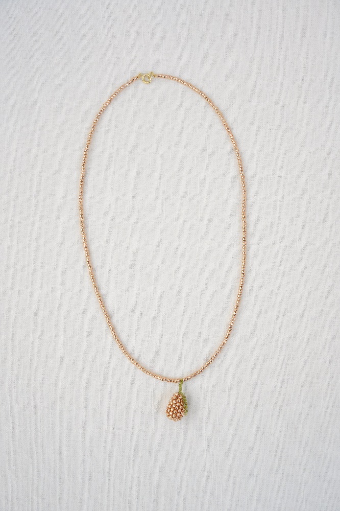 Women's necklace made entirely of glass beads with one fruit. The clasp is made of gold-plated silver.
