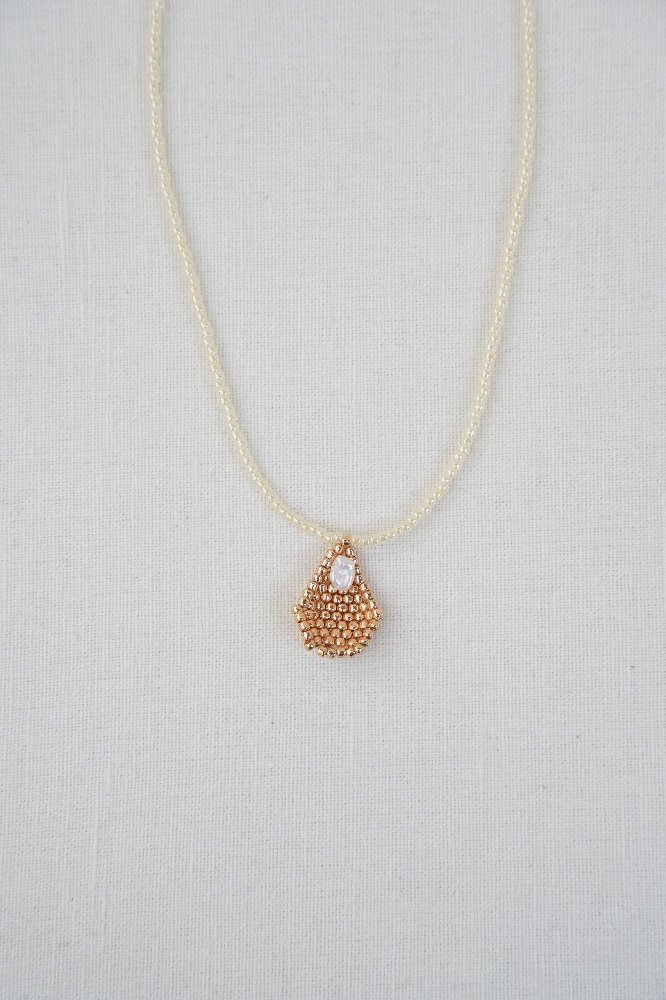 Women's necklace made entirely of glass beads with a shell motif. The clasp is made of gold-plated silver.