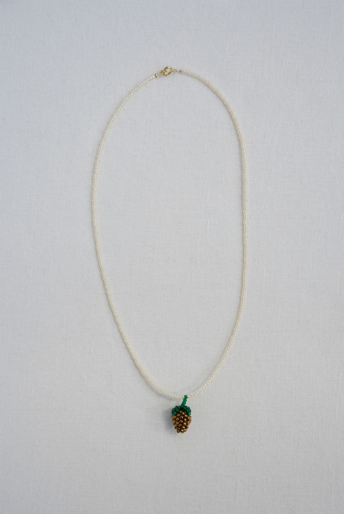 Women's necklace made entirely of glass beads with one fruit. The clasp is made of gold-plated silver. The jewelry is handmade by us.