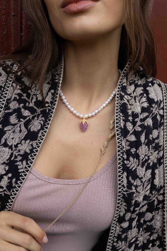 Soft pink berry on pearls