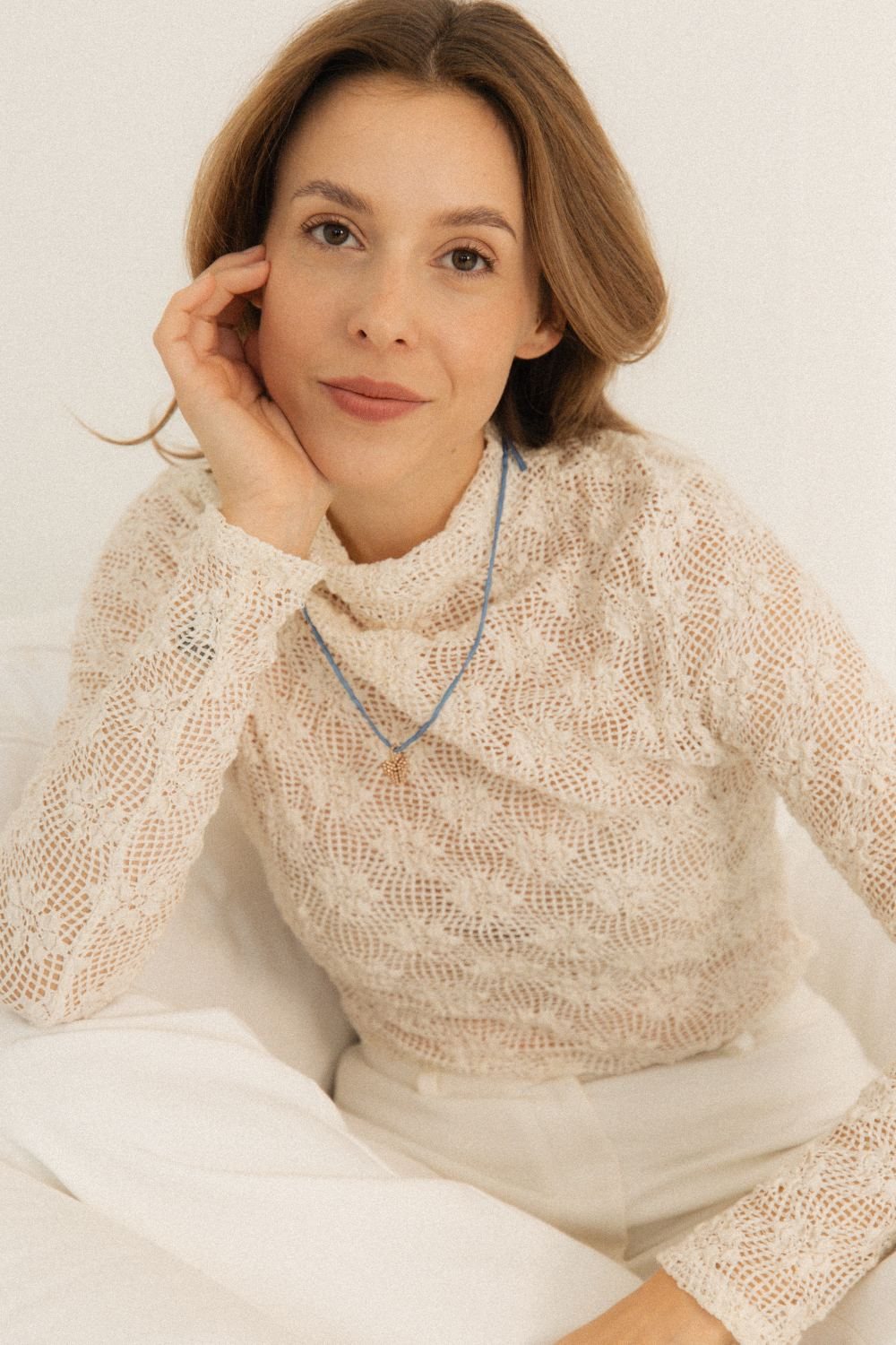 Dove blue on silk lace