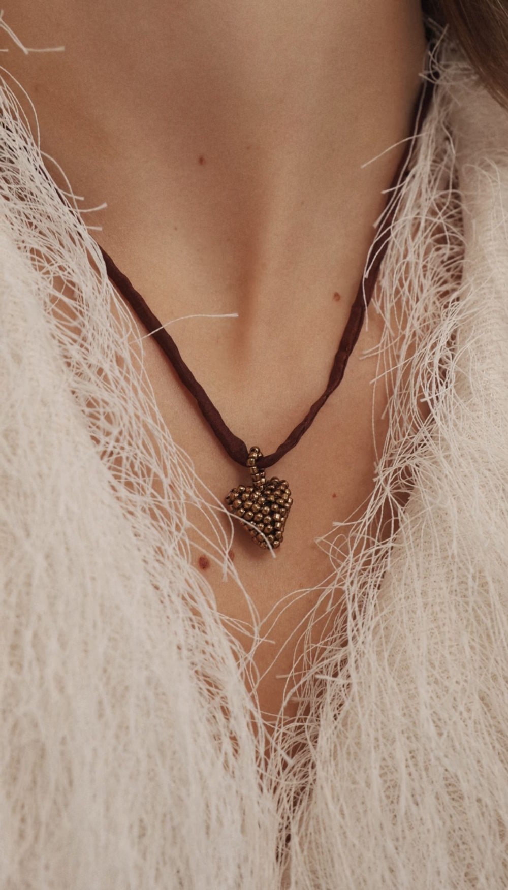 Golden heart on silk lace