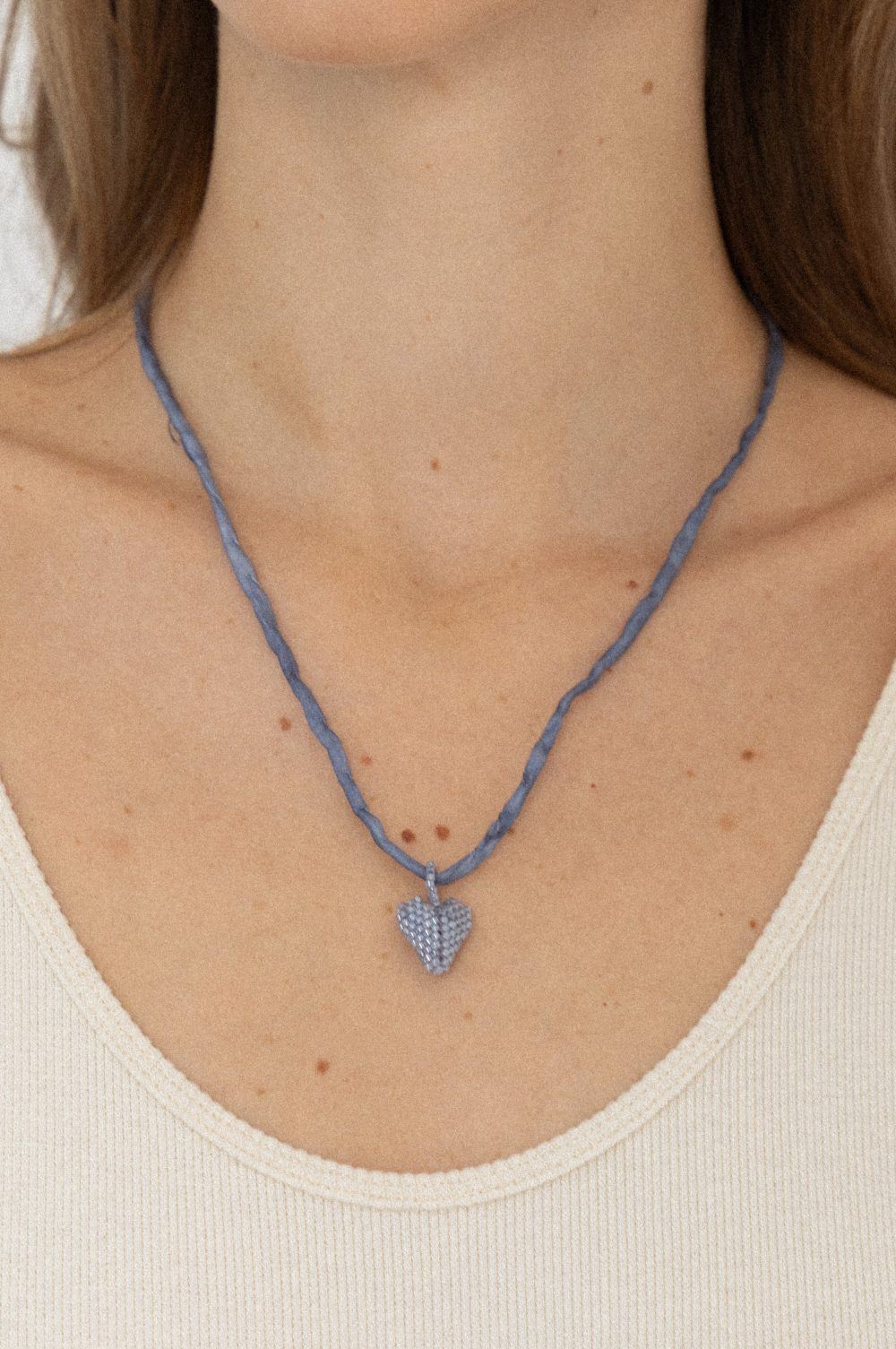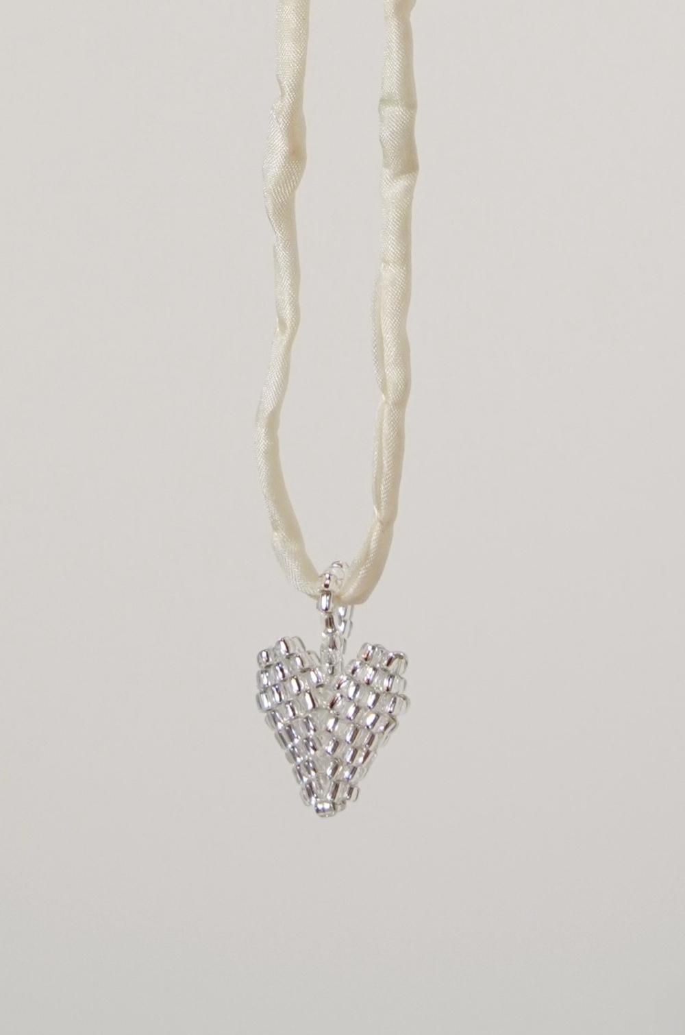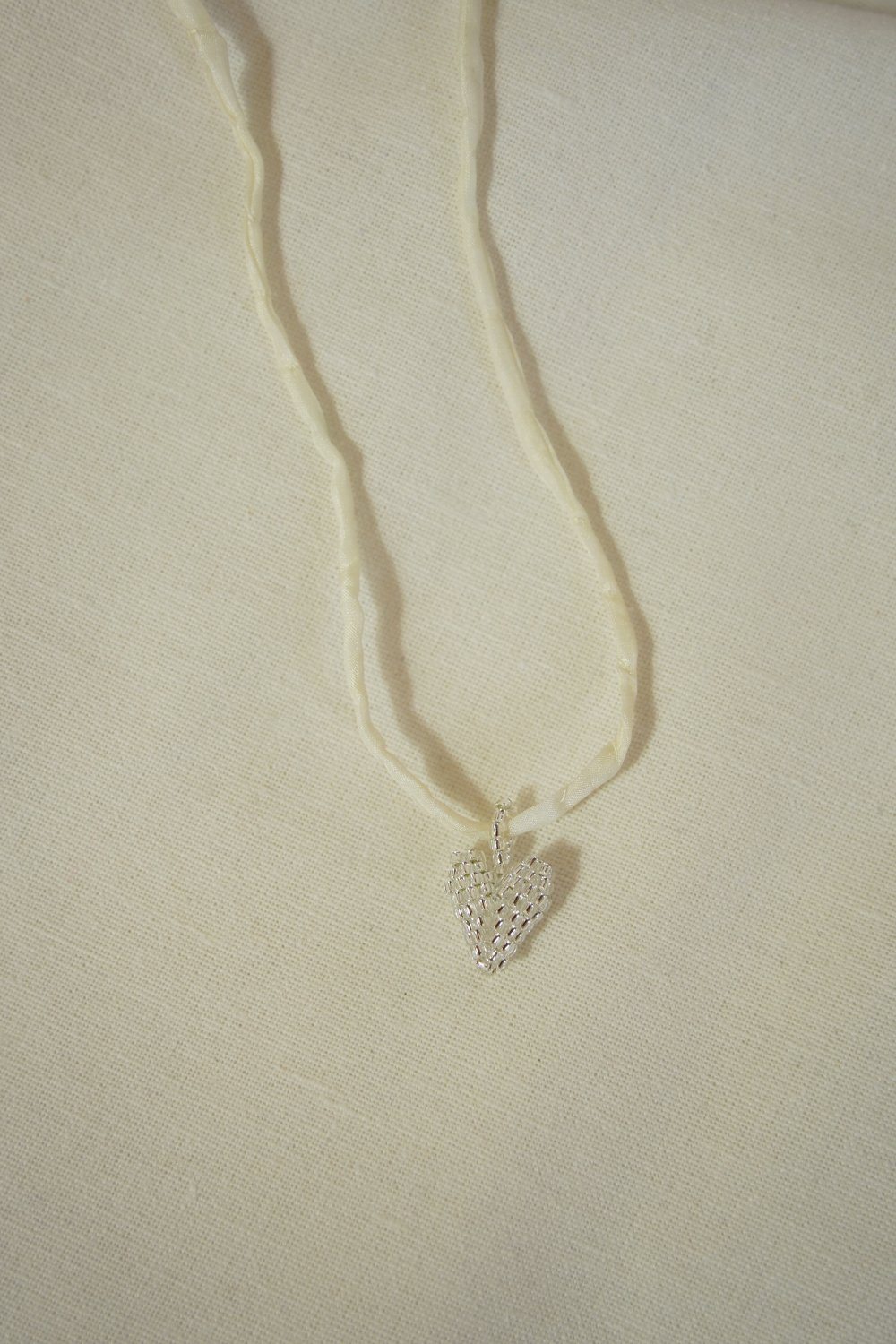 Silver heart on silk lace