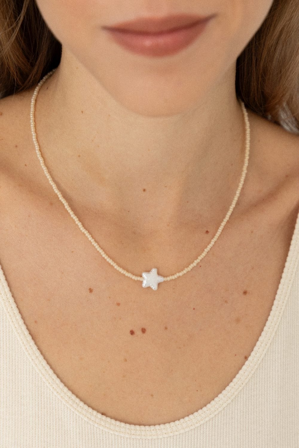 Pearl star on creamy beads