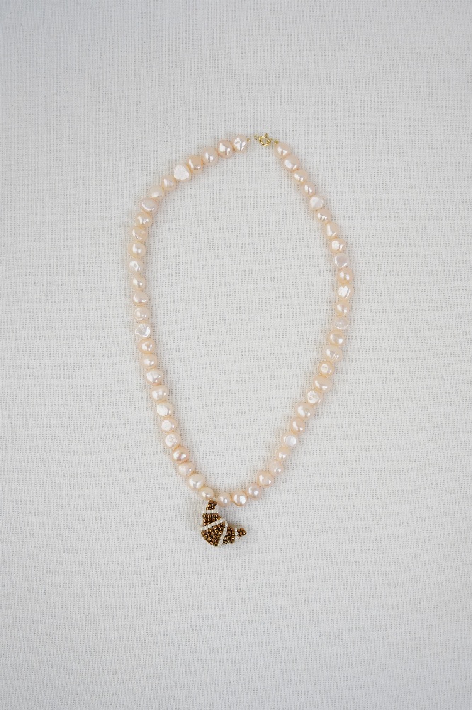 Chocolate croissant on pink pearls