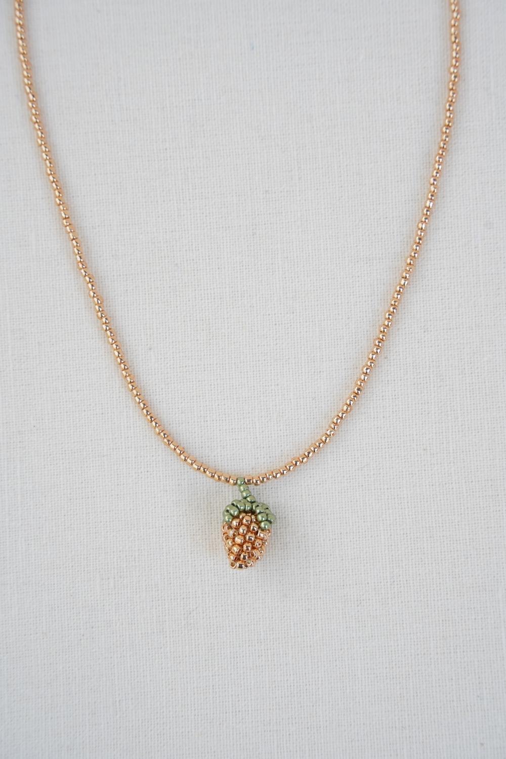 Naszyjnik damski wykonany w całości ze szklanych koralików z jednym owocem. Zapięcie wykonane jest ze srebra pozłacanego. Biżuteria wykonywana jest przez nas ręcznie.